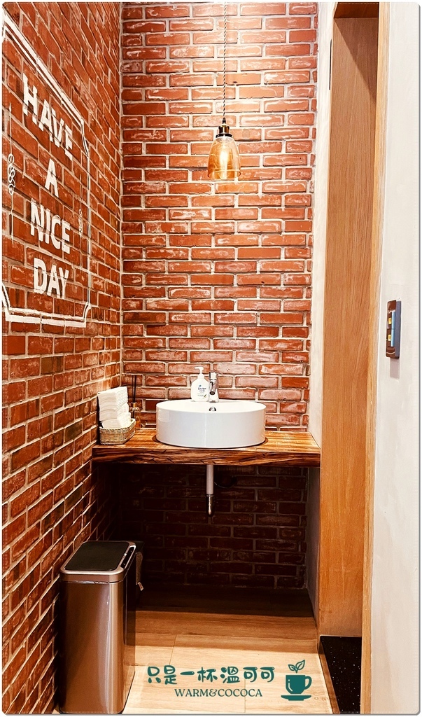 廁所開放式洗手台,讓店裡感覺更大更寬敞,感應式垃圾桶讓環境看起來更乾淨整潔