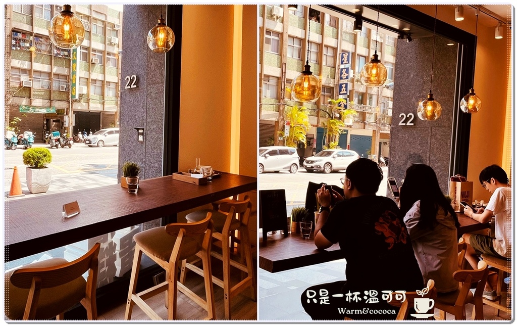 店門口設置了四人吧檯,是用工業風的風格吊燈配上原木的高腳椅,坐起來相當舒適!