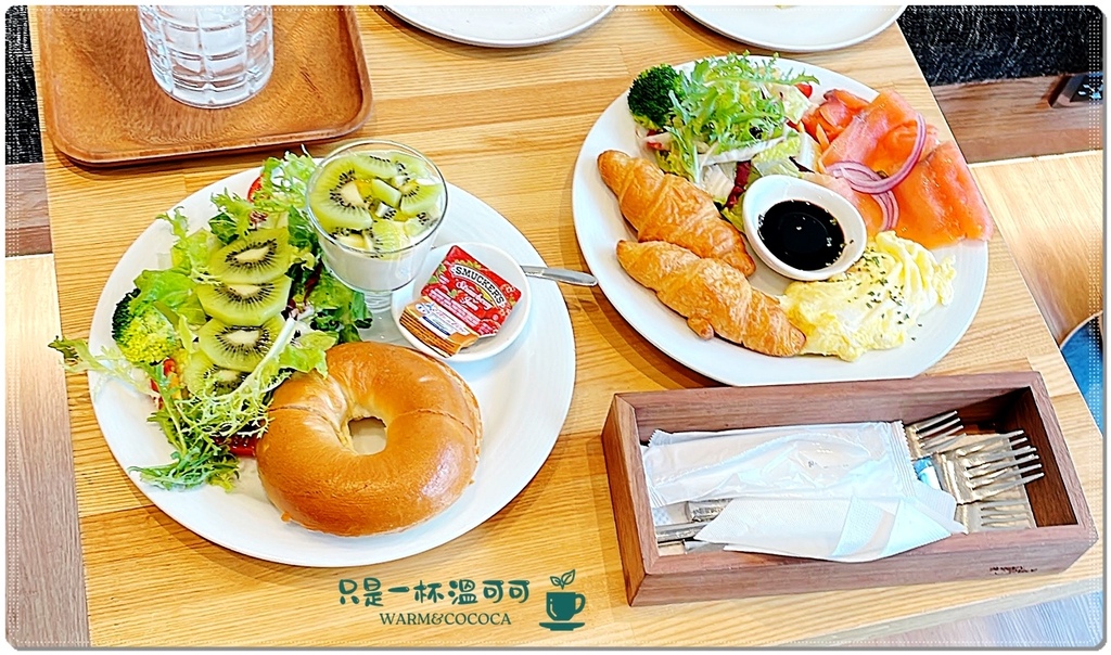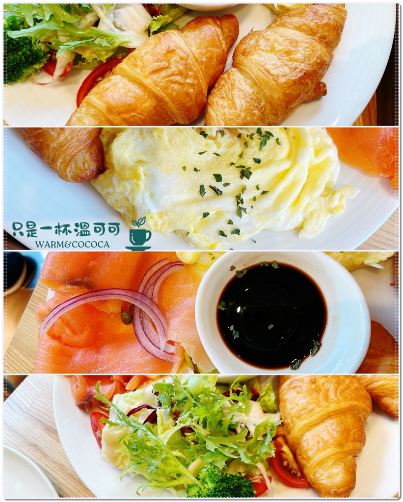 配上軟嫩的歐姆蛋,及酥酥的現烤可頌,清爽清脆的蘿美沙拉增加飽足感,超滿足的早餐盤