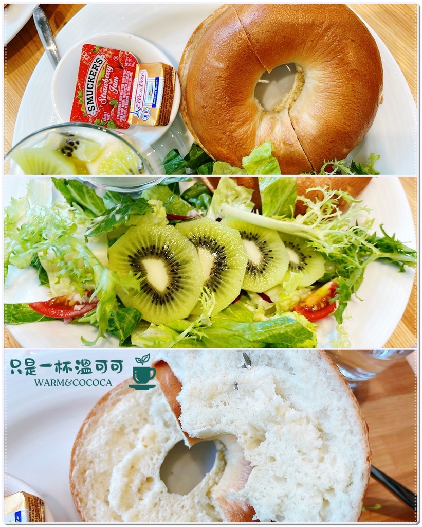 店員說:貝果是手工發酵,所以外殼跟內裡不會硬硬的咬不動