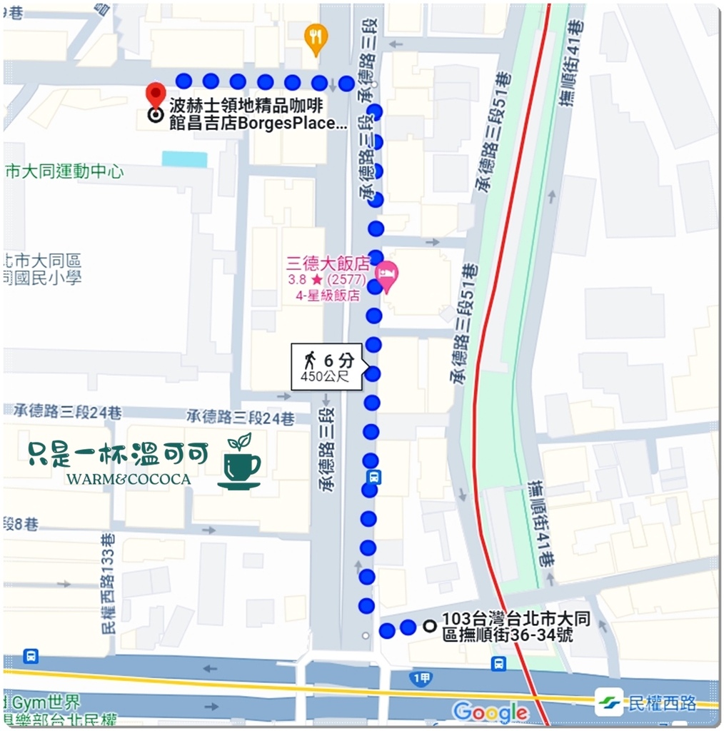 距離民權西路捷運站5號出口 450M 走路7分鐘