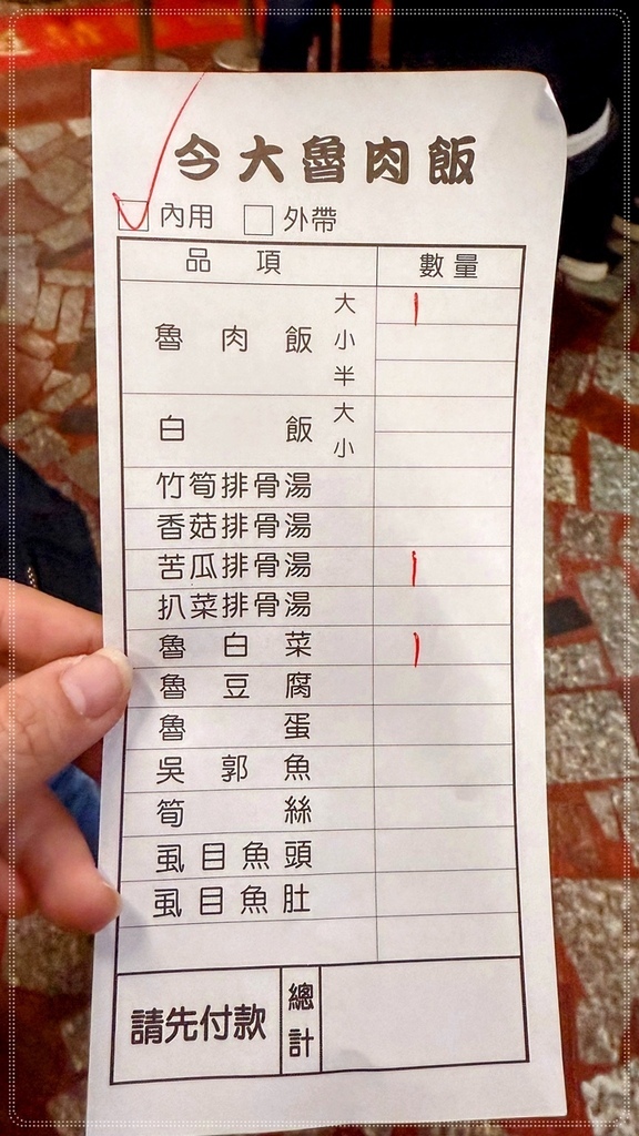 從台北回家,不知道晚餐要吃什麼,忽然想到了我鶯歌朋友推薦的滷肉飯,多搭了兩站來到了今大滷肉飯,看到這大聲公就知道,平常排隊人潮是多麼塞車的,紅地毯的地方還不能排隊要讓路,哈哈