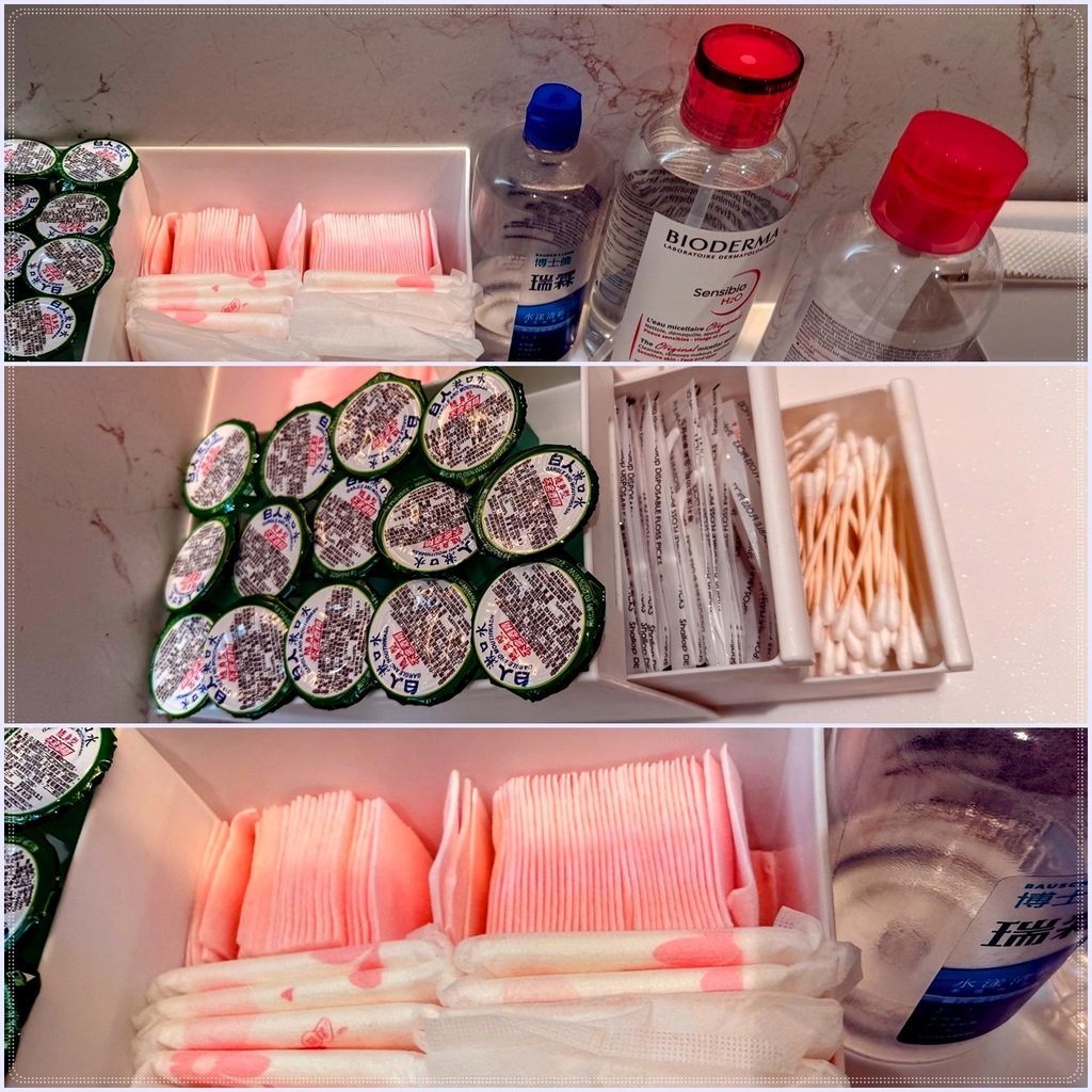 洗手台上還提供超豐盛的備品~我忘記帶漱口水了,連隱形眼鏡保養液都有,可以使用超方便!