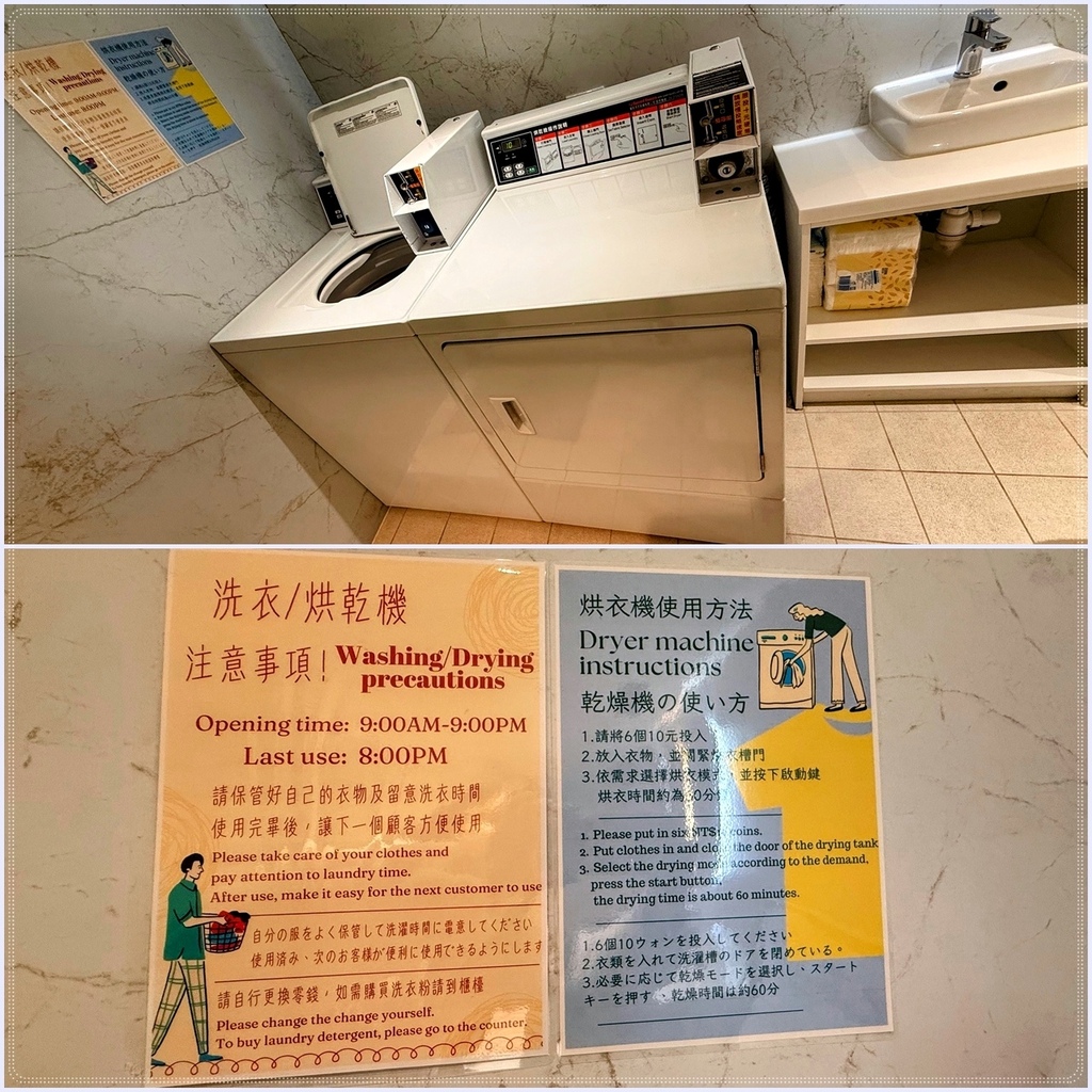 投幣式的洗衣機和烘衣機,搭配多國語言的說明書,讓來自世界各地的旅客都能輕鬆使用。