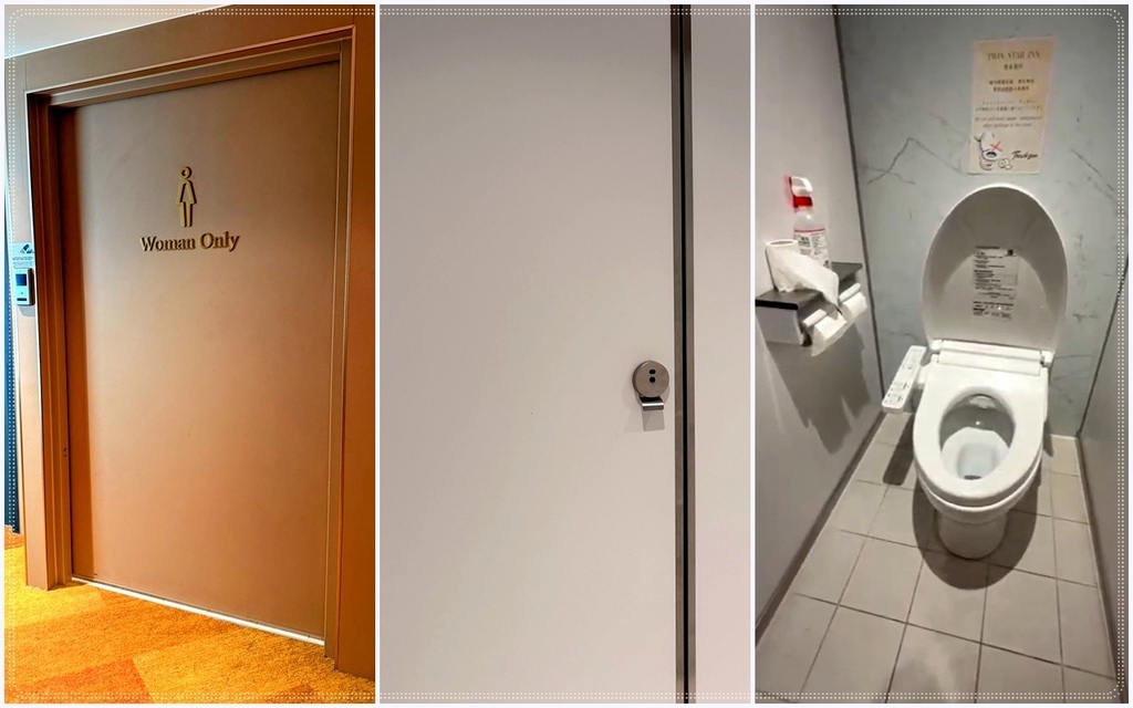 除了房間外,最重要的就是廁所啦!!逼卡進去就是三個廁所門!打開就是高級的免治馬桶~衛生紙雖然是捲筒的,但是好柔軟喔!